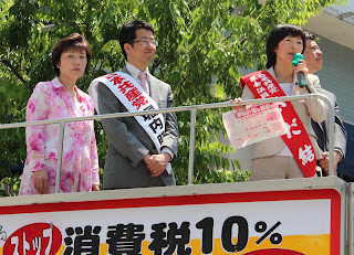 左端は松本のり子神戸市会議員。(元町大丸前) |